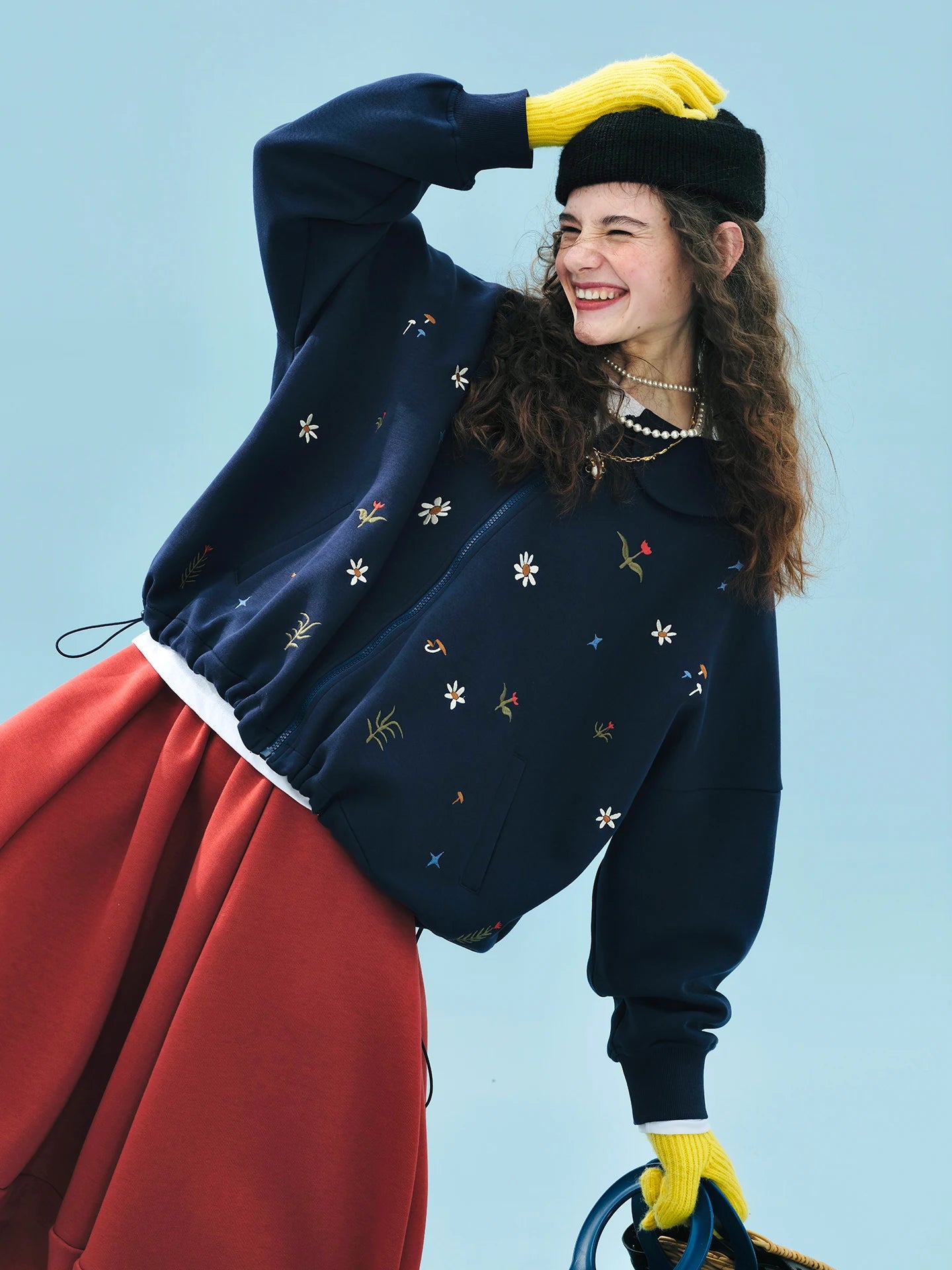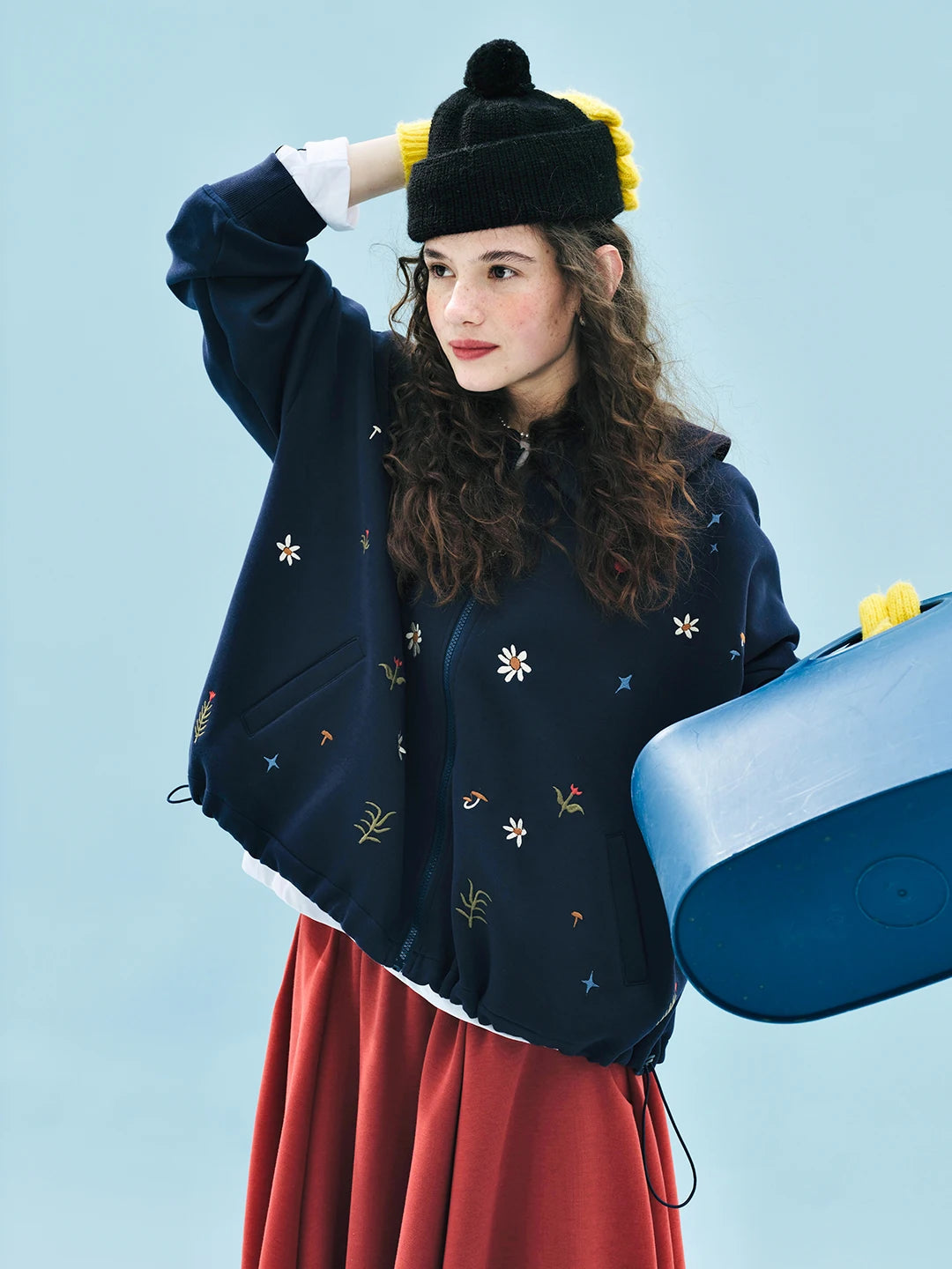 This adorable vintage-style zip-up hoodie is perfect for kids who love to express their unique style. Made from a comfortable blend of cotton and polyester, it features a charming floral embroidery design that adds a playful touch.